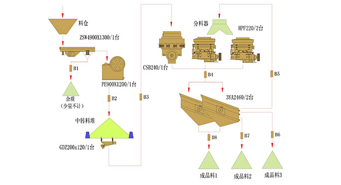 該公(gong)司(si)為實力雄厚的大(da)型(xing)石料(liao)有限公(gong)司(si) 從我司(si)購入(ru)PE900*1200顎破(po)(po)(po)、HPC220圓(yuan)錐(zhui)破(po)(po)(po)兩套(tao)、CSB240B圓(yuan)錐(zhui)破(po)(po)(po)、ZSW490*130給料(liao)機(ji)、GZD*120給料(liao)機(ji)兩臺、3YA2160振(zhen)動篩兩臺