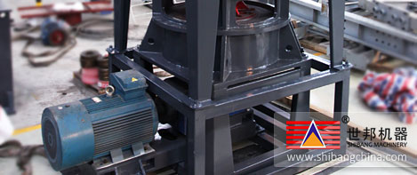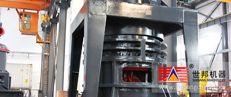 主(zhu)機(ji)(ji)電動(dong)機(ji)(ji)通過(guo)減速器(qi)帶(dai)動(dong)主(zhu)軸及各(ge)層轉(zhuan)盤(pan)旋(xuan)(xuan)轉(zhuan),轉(zhuan)盤(pan)通過(guo)柱銷帶(dai)動(dong)幾(ji)十個(ge)環(huan)輥在磨(mo)環(huan)滾(gun)道內(nei)滾(gun)動(dong)并(bing)旋(xuan)(xuan)轉(zhuan)。大塊物(wu)(wu)(wu)料(liao)經錘(chui)式破碎機(ji)(ji)破碎成小(xiao)顆粒后(hou)(hou)由提升機(ji)(ji)送(song)入儲(chu)料(liao)倉(cang),電磁(ci)振動(dong)給料(liao)機(ji)(ji)將物(wu)(wu)(wu)料(liao)均勻的(de)(de)送(song)到上轉(zhuan)盤(pan)的(de)(de)中部,物(wu)(wu)(wu)料(liao)在離心(xin)力的(de)(de)作用下散向圓周邊,并(bing)落入磨(mo)環(huan)的(de)(de)滾(gun)道內(nei)被環(huan)輥沖壓(ya)、滾(gun)碾、研磨(mo)而粉(fen)碎,物(wu)(wu)(wu)料(liao)經層粉(fen)碎后(hou)(hou)落入層及第(di)三(san)層,高(gao)壓(ya)離心(xin)風機(ji)(ji)的(de)(de)抽吸作用將外部空(kong)氣吸入機(ji)(ji)內(nei),并(bing)經過(guo)第(di)三(san)層粉(fen)碎后(hou)(hou)的(de)(de)粗(cu)粉(fen)帶(dai)入選(xuan)粉(fen)機(ji)(ji)內(nei)。選(xuan)粉(fen)機(ji)(ji)內(nei)旋(xuan)(xuan)轉(zhuan)的(de)(de)渦輪使粗(cu)顆粒物(wu)(wu)(wu)料(liao)回落重(zhong)磨(mo),細粉(fen)則(ze)隨氣流進入旋(xuan)(xuan)風集粉(fen)器(qi)并(bing)由其下部的(de)(de)卸料(liao)閥排(pai)(pai)出(chu)即為成品,而帶(dai)有(you)少量(liang)細粉(fen)塵(chen)的(de)(de)氣流則(ze)經過(guo)脈(mo)沖除塵(chen)器(qi)凈(jing)化后(hou)(hou)通過(guo)風機(ji)(ji)和消(xiao)聲(sheng)器(qi)排(pai)(pai)出(chu)。